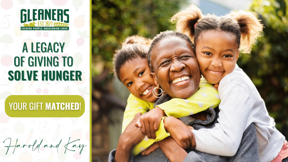 Your donation to Gleaners will provide seniors with access to the healthy food they need. And thanks to the Harold & Kay Matching Gift Fund, your gift will go twice as far. During the month of March, every dollar you give will be matched, up to $100,000—providing twice as many meals for our senior neighbors.